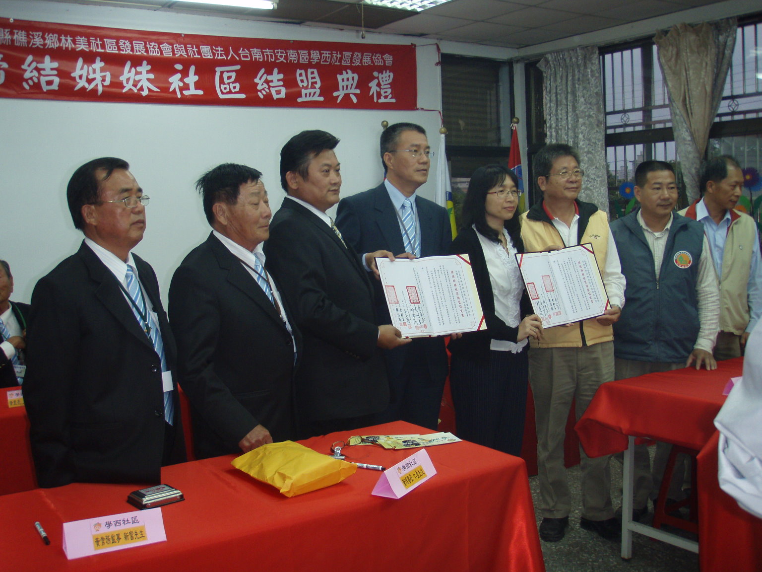 為相互推行恆久的友好關係,本社區訂於4月23日17時,與社團法人台南市安南區學西社區發展協會在林美社區活動中心,正式締結為姐妹社區。