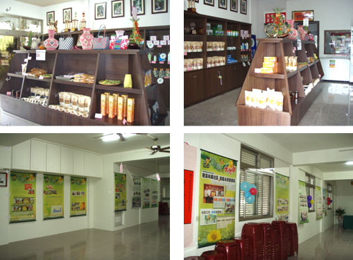 1.社區產業研發的商品、金棗冰、蜜金棗、金棗點心、茶包、精油香皂等等在社區合作社規劃產業展售的位置現況照片,陳列社區相關產品。